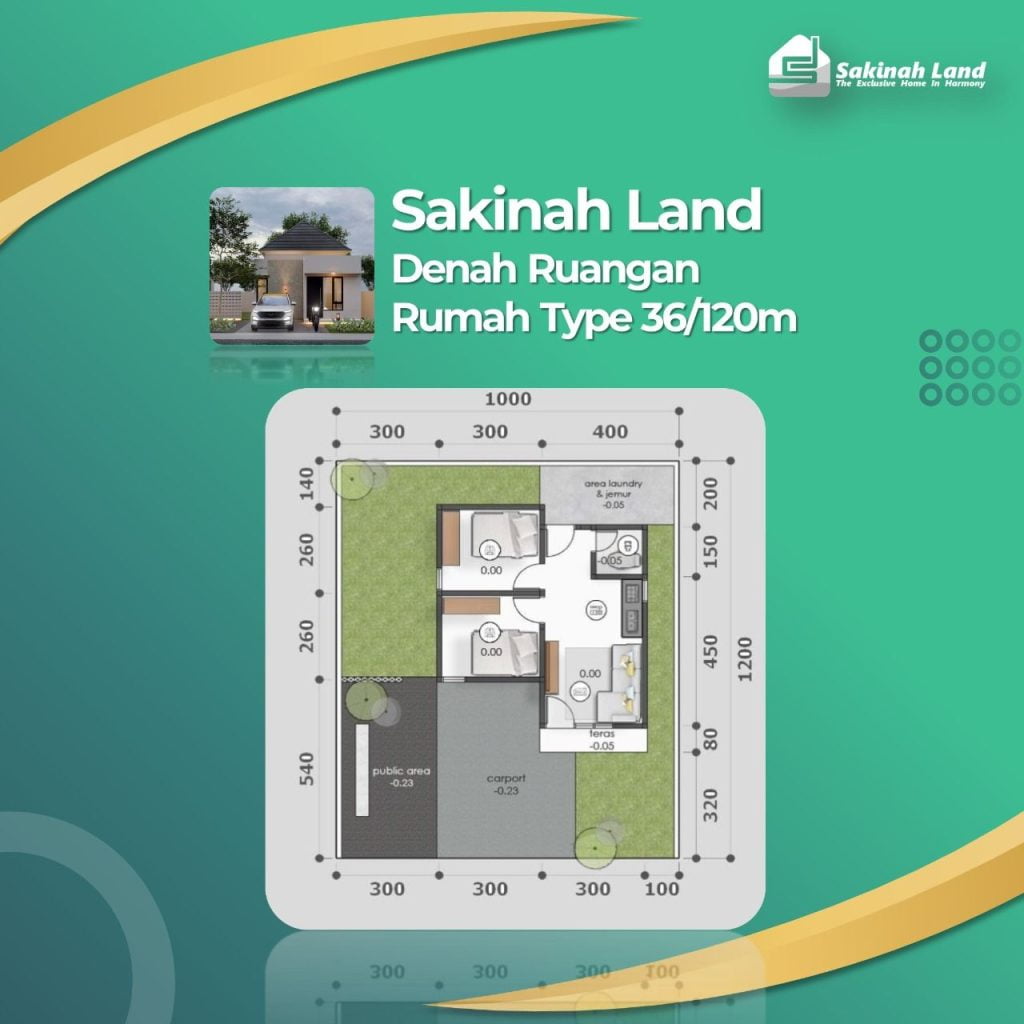 Denah Dan Tampak Bangunan Rumah Satu Lantai Tipe 36 Dengan Luas Tanah 120